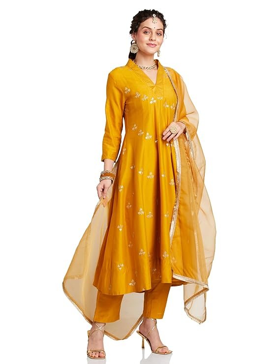 Amazon Brand – Myx Women’s Embroidered Anarkali Kurta Set with Organza Dupatta | Latest Design | Available in Plus Sizes