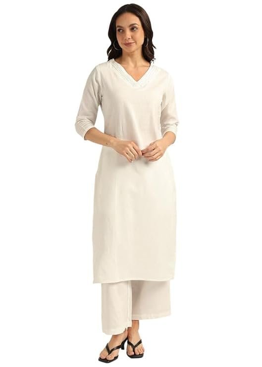 BLOCKS OF INDIA Women’s Solid Straight Kurta Set | Hand-Stitched Neck Details with Pintucks | Comfortable Pants with Pockets, Elastic Waist & Drawstring Fit