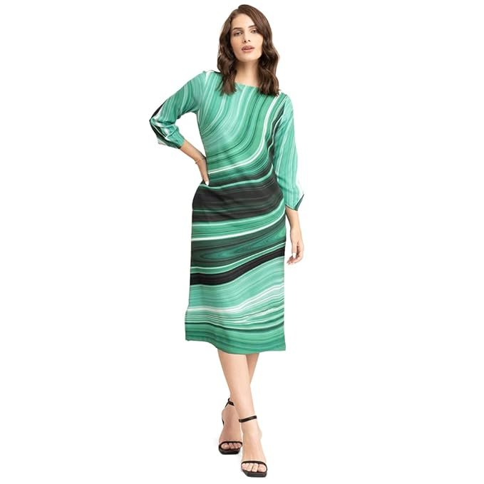 Be the first to review “FableStreet Women’s Formal V-Neck Green Marble Print Dress”
