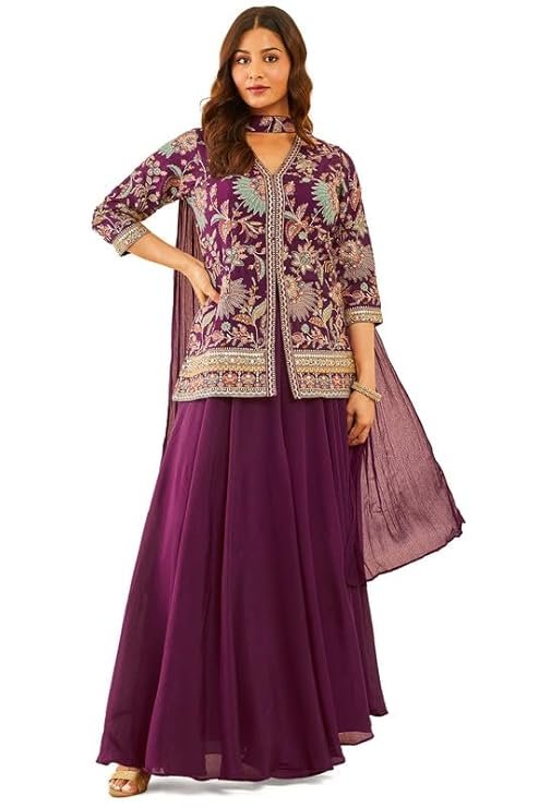 Be the first to review “Soch Womens Wine Embroidered Chinon Sharara Suit with Dupatta” Cancel reply