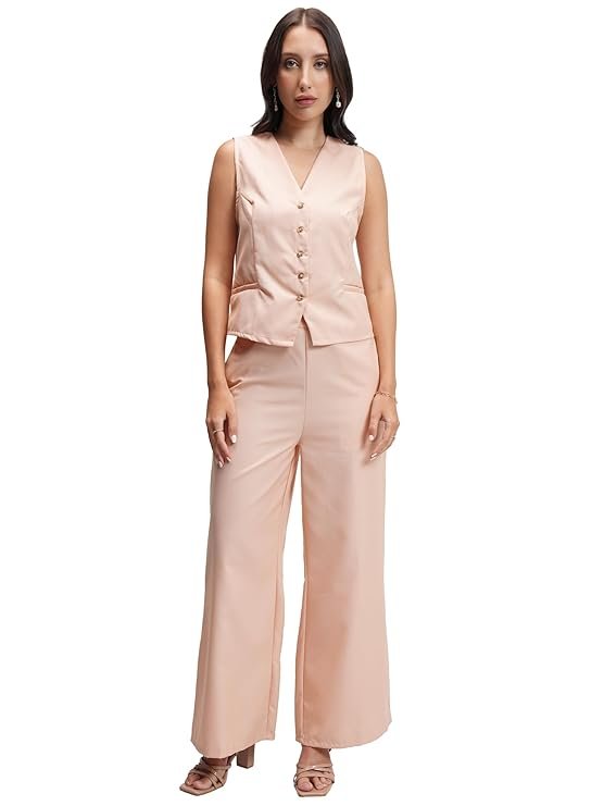 Tokyo Talkies Women’s Tailored Waistcoat & Flared Trousers Co-ord Set | Sleek & Sophisticated | Trendy & Versatile
