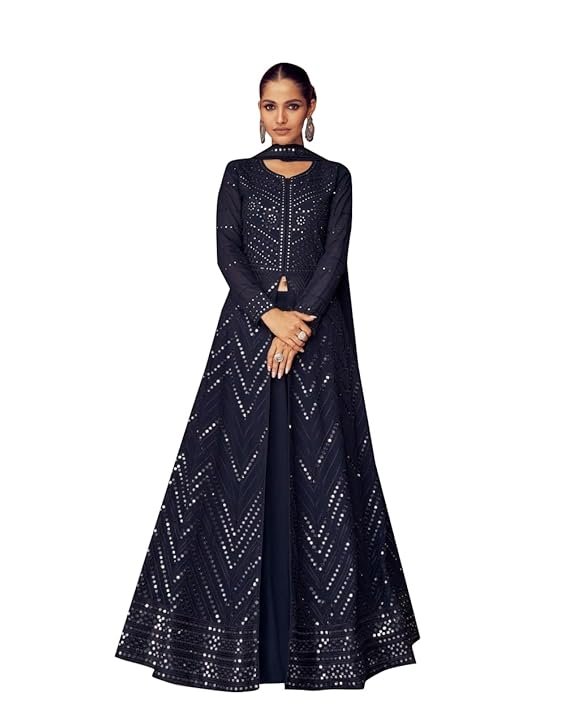 TRENDMALLS Women’s Georgette Embroidery Anarklai Suit Set Kurta Lehenga with Dupatta Blue Kurta Set for Women