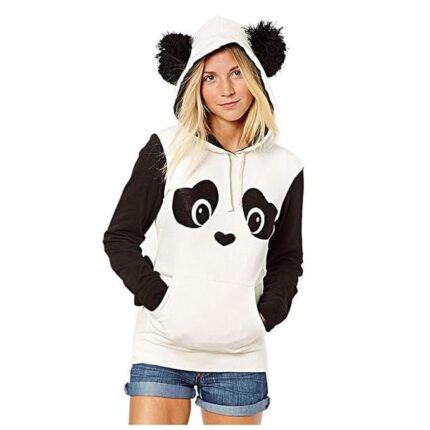 oiry Fashionable Women’s Printed Contrast Pocket Hooded Fleece Top Sweater