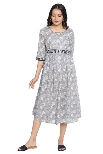 Aurelia Women Fit and Flare Knee-Length Cotton Gathe Dress