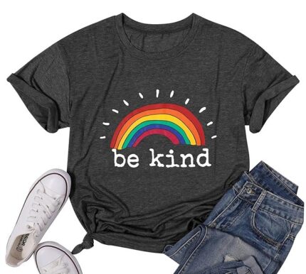 Be Kind Rainbow Shirts for Women Short Sleeve Letter Printed Inspirational Tee Shirts